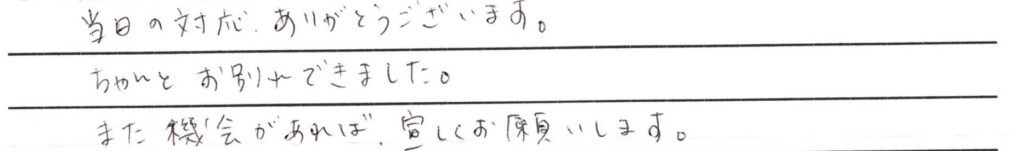 当日の対応ありがとうございます。