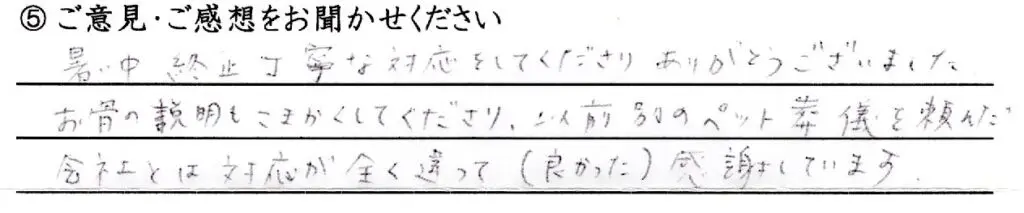 お骨の説明もこまかくしてくださり、以前別のペット葬儀を頼んだ会社とは