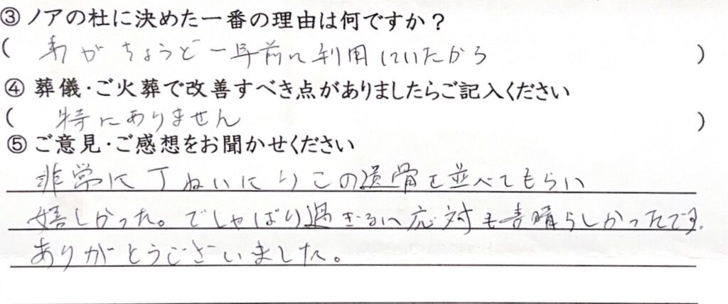 -非常に丁ねいにりこの遺骨を並べてもらい嬉しかった。でしゃばり過ぎない応対も素晴らしかったです。